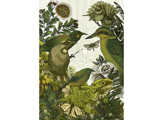 Flocks of stencil artist Flox’s trademark native birds can be found flying across city streets, homes and galleries breathing life into both intimate interiors and the urban environment, creating joyous celebrations of natural New Zealand.