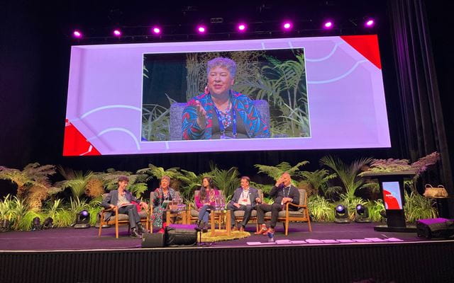 Caren Rangi, Chair of the Arts Council of New Zealand Toi Aotearoa was part of a panel chaired by Deputy Mayor Rohan O'Neill-Stevens which discussed reimagining local government, alongside Tara Moala, Helmut Modlik and Mayor Bernie Wanden.